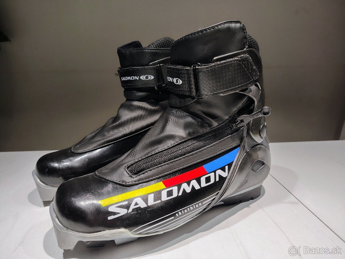 Predám závodné bežecké topánky Salomon Skiathlon.Velkost 37-38 Eu, dĺžka 23 cm.System SnS.Jedenkrat použité.Mozno použiť na oba bežecké štýly vďaka pohyblivému kĺbu.