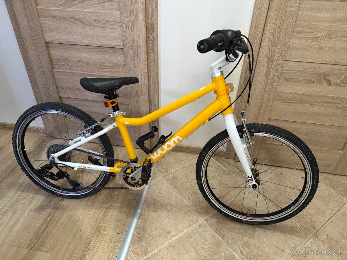 Predám bicykel woom 4, veľkosť kolies 20. Žltý, má známky používania. Aj s držiakom na fľašu, stojanom, predným a zadným svetlom. Cena 430€, Považská Bystrica