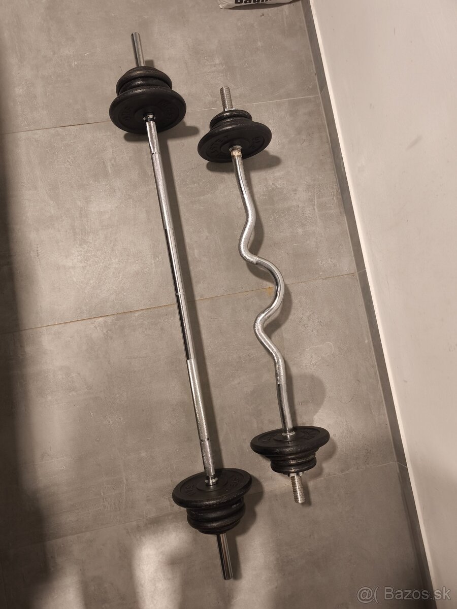 Predám činku rovnú tyč a ezeta + svorky. Závažie: