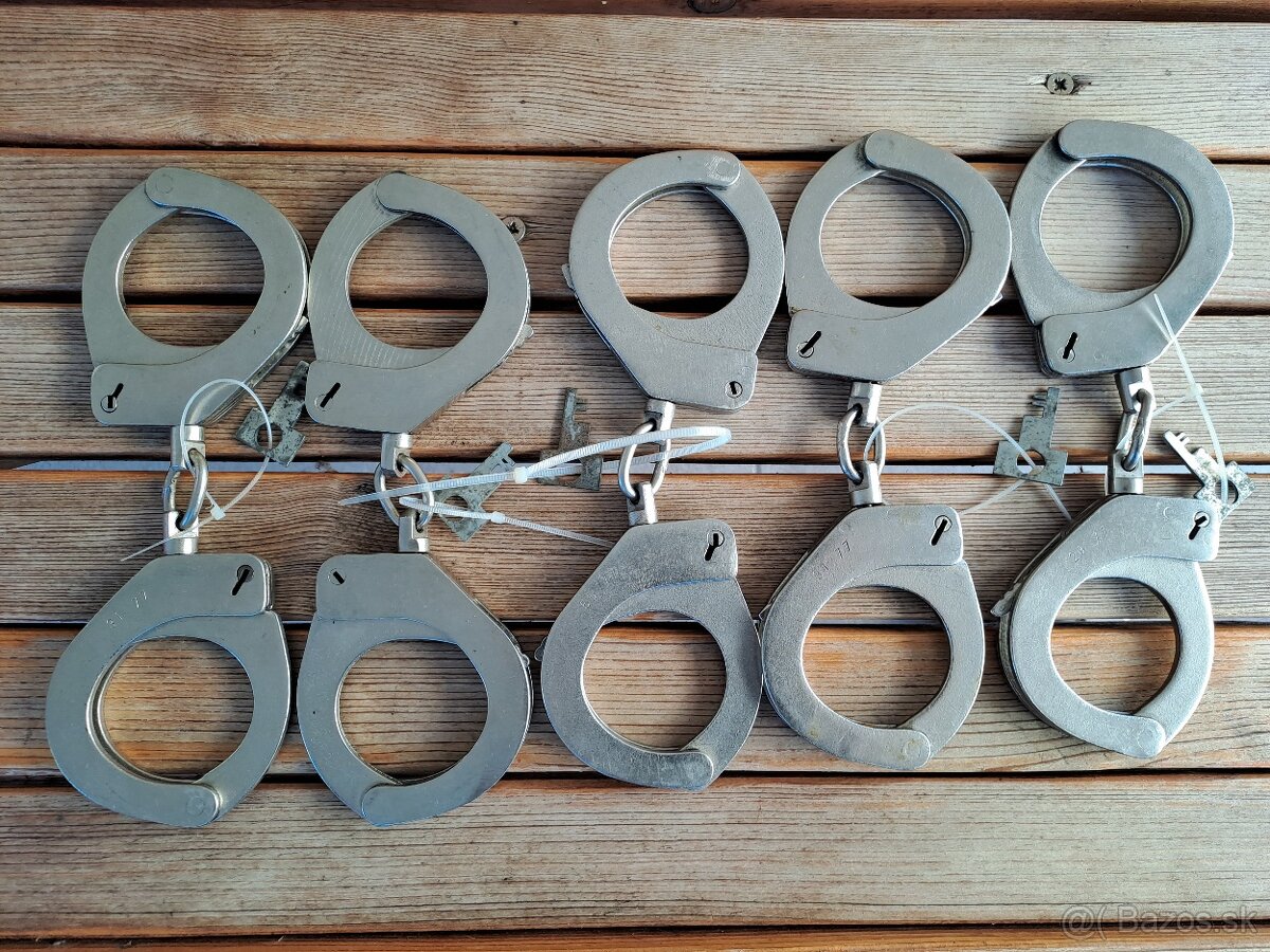 Predám staré, použité, ale funkčné policajné putá. Majú známky používania. Ku každému je 1 kľúč a hnedé opaskové puzdro so suchým zipsom. Vhodné na zberateľské účely. Cena 20 €/ks.