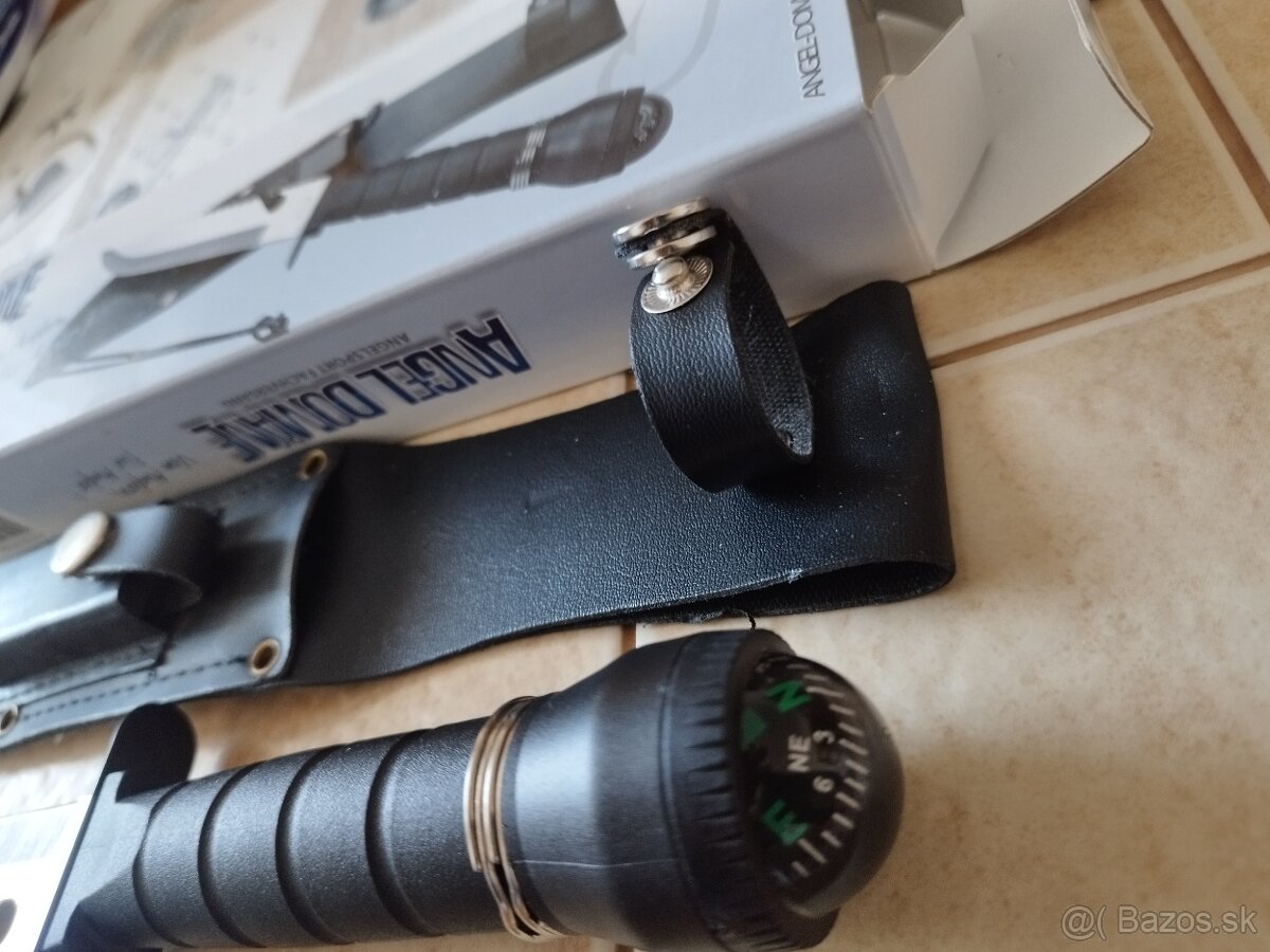Predam novy,nepouzivany noz na prezitie,dlzka cepele 14cm,celkova dlzka 28 cm,kozene puzdro,kompas,ryb.vlasec,haciky,brusny kamen.