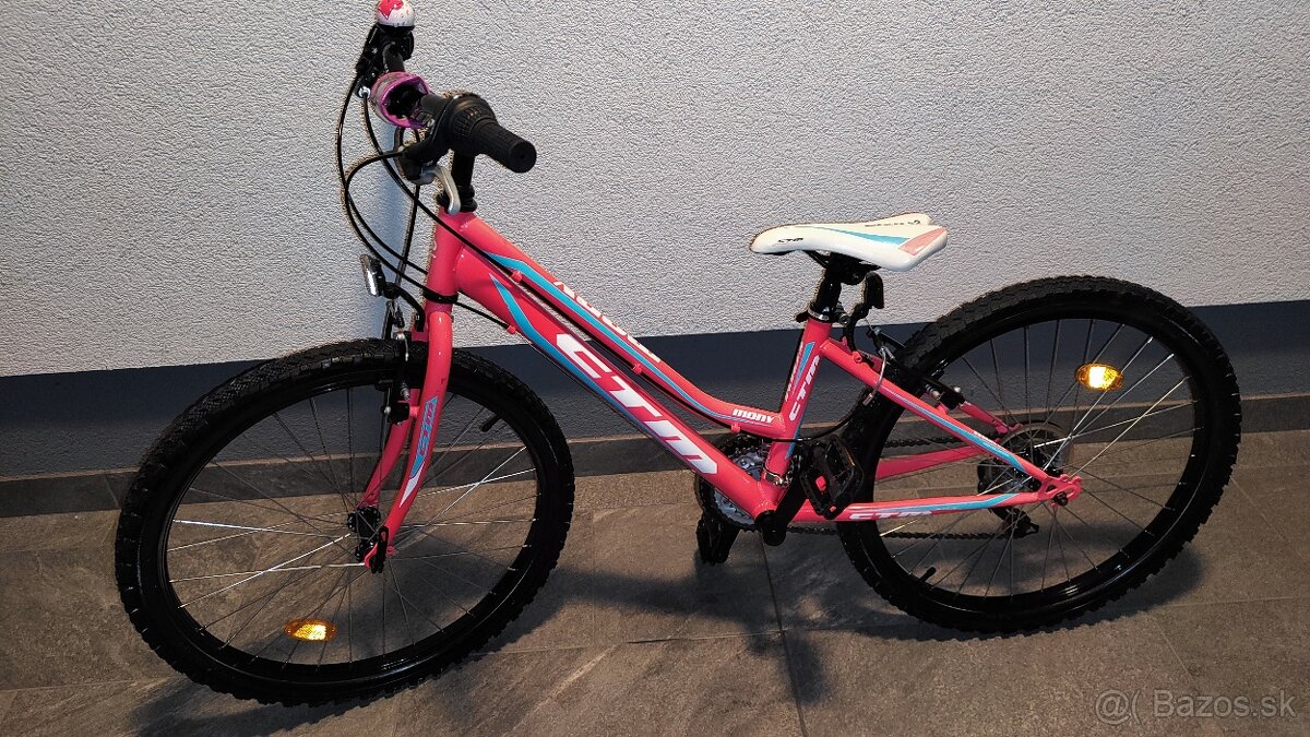 Predám detský dievčenský bicykel CTM MONY, veľkosť kolies 24.Bycikel má prehadzovač vpredu -vzadu, odrazká a zvonček.Je veľmi pekný, vhodný aj ako darček