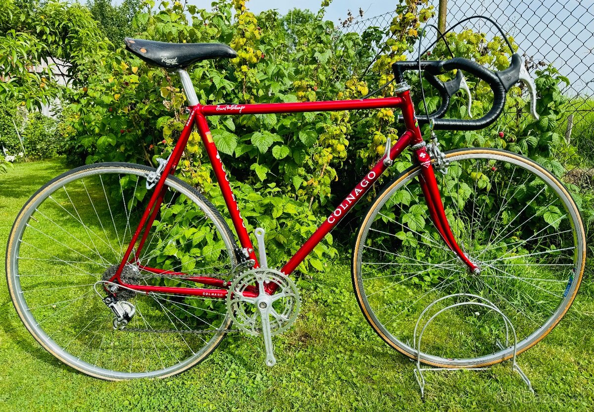 nabízím k prodeji Colnago Nuovo Mexico v legendární barvě sarroni red.Kolo je osazeno komponenty Campagnolo Super Record a Record. Jedná se o poslední generaci modelu Nuovo Mexico, která má tah bowdenu vnitřkem horní rámové trubky. Velikost je 57 cm střed-vrch a 55 cm střed-střed.