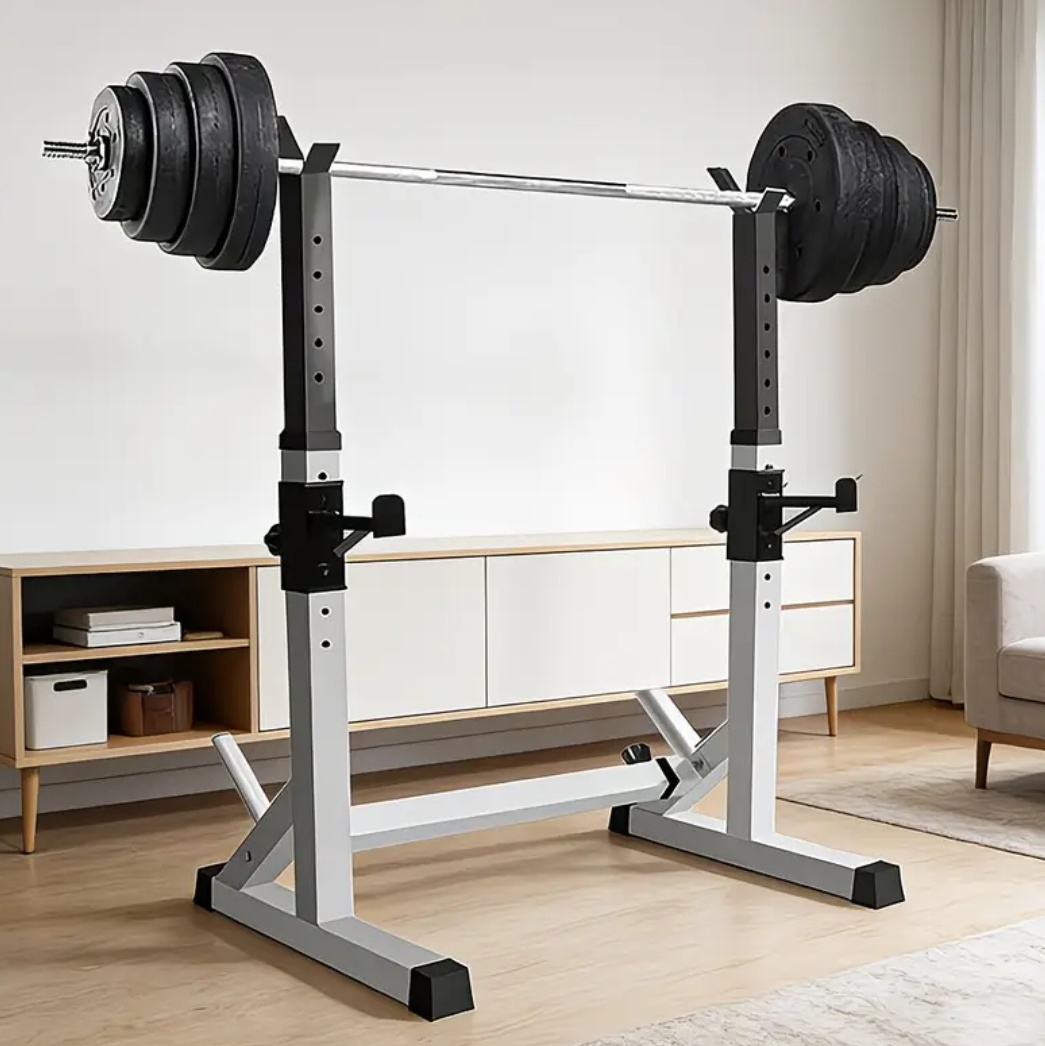 Nastaviteľný skladací stojan na činky, nosnosť až 200kg. Farba bielo-čierna. Multifunkčný posilňovací stojan, robustný odolný železný rám, pre domácu posilňovňu. Max. nastaviteľná výška 132cm. Miery v obrázkoch. Dovezené z Nemecka. Čisto nový, nepoužitý, v krabici. Osobný odber Prosiek.