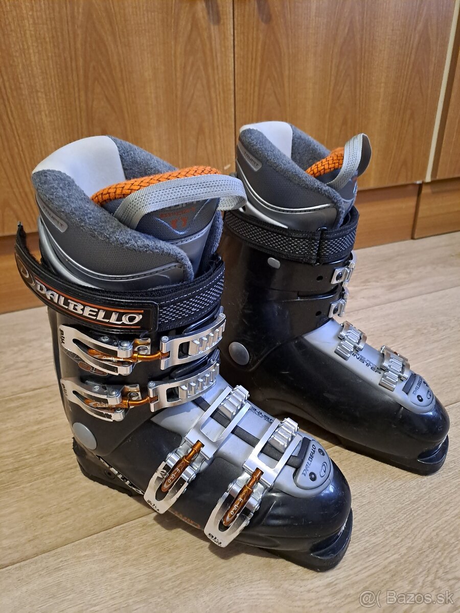 Predávam juniorske lyžiarky Dalbello NF 8.5 TF Black matal, info z obalu: veľkosť 39 1/2, 255 mm. Meraná vnútorná dĺžka 25.2 cm.Sú veľmi kvalitné,odolná konštrukcia, nastavenie Ski/Walk (Chôdza/Lyžovanie); 4 kovové klipy pre bezpečné zapínanie - takže v mraze nepuknú ako umelohmotné.Nastaviteľný flex (umožňuje lyžiarovi prispôsobiť si tuhosť topánky).BA, príp.PD