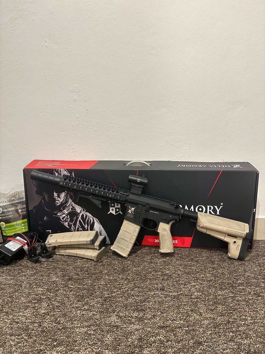 Prodám airsoftovou elektrickou pušku AR15 MK18 od Delta Armory, série ALPHA (model DA-A07).