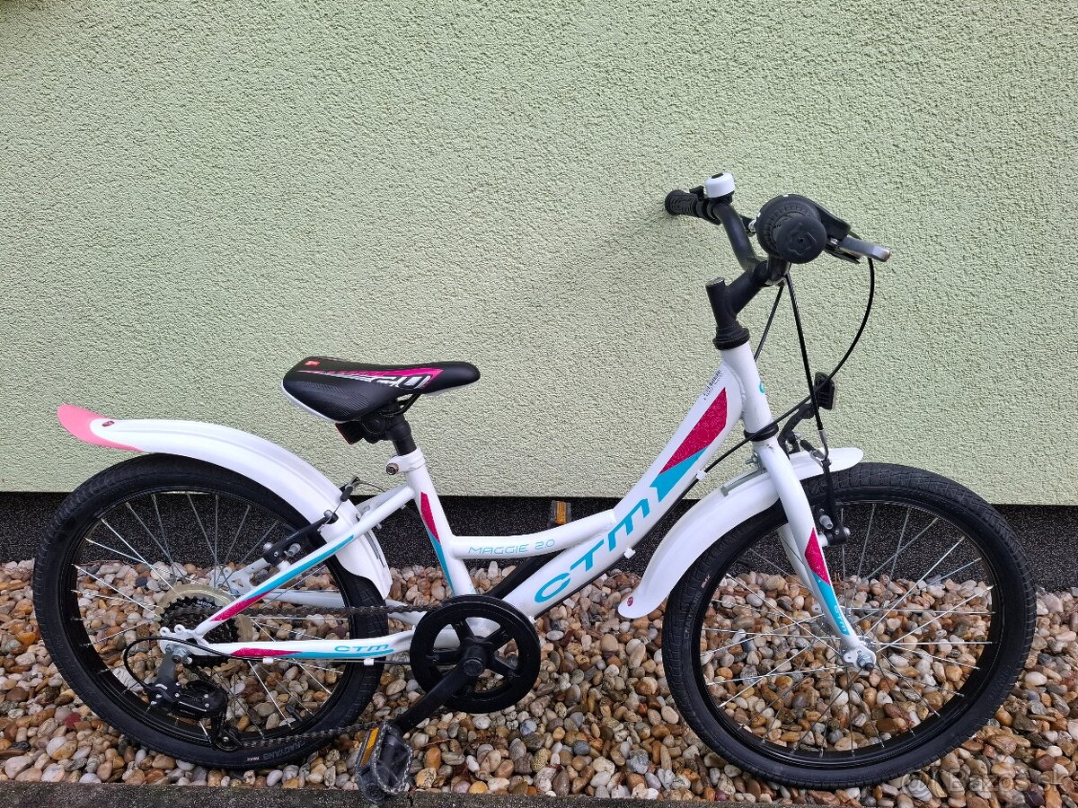 Predám dievčenský bicykel Ctm Maggie 2.0.veĺkosť kolies 20,brzdy V-break,prehadzovač Shimano,radenie Shimano revoshift,blatniky,stojan,zvonček.100% technický stav.
