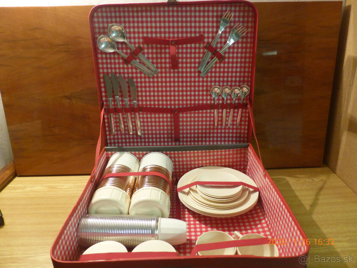 Predám kemingovú retro súpravu zo 60 rokov. Súprava je kompletná pre štyri osoby, nebola použitá, je čistá žiadne škrabance, aj kufrík je veľmi zachovalý. Cena 50,- eur, posielam aj na dobierku + poštovné,pozri moje ďalšie inzeráty. mobil: 0908-530 640