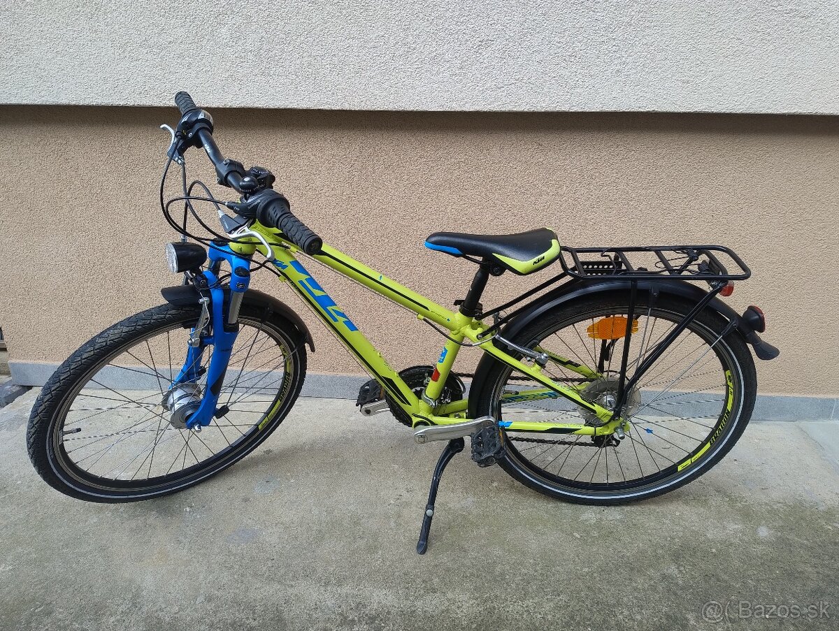 Predám značkový chlapčenský bicykel KTM Wild one 24´. Rám 31cm, prehadzovačka Shimano 3x7, blatníky, rošt,stojan, dynamo v prednom kolese, velmi pekný s minimom škrabancov. Vek od ca. 8-12rokov. Cena 220Euro pripadne dohodou. Len osobný odber po obhliadke.