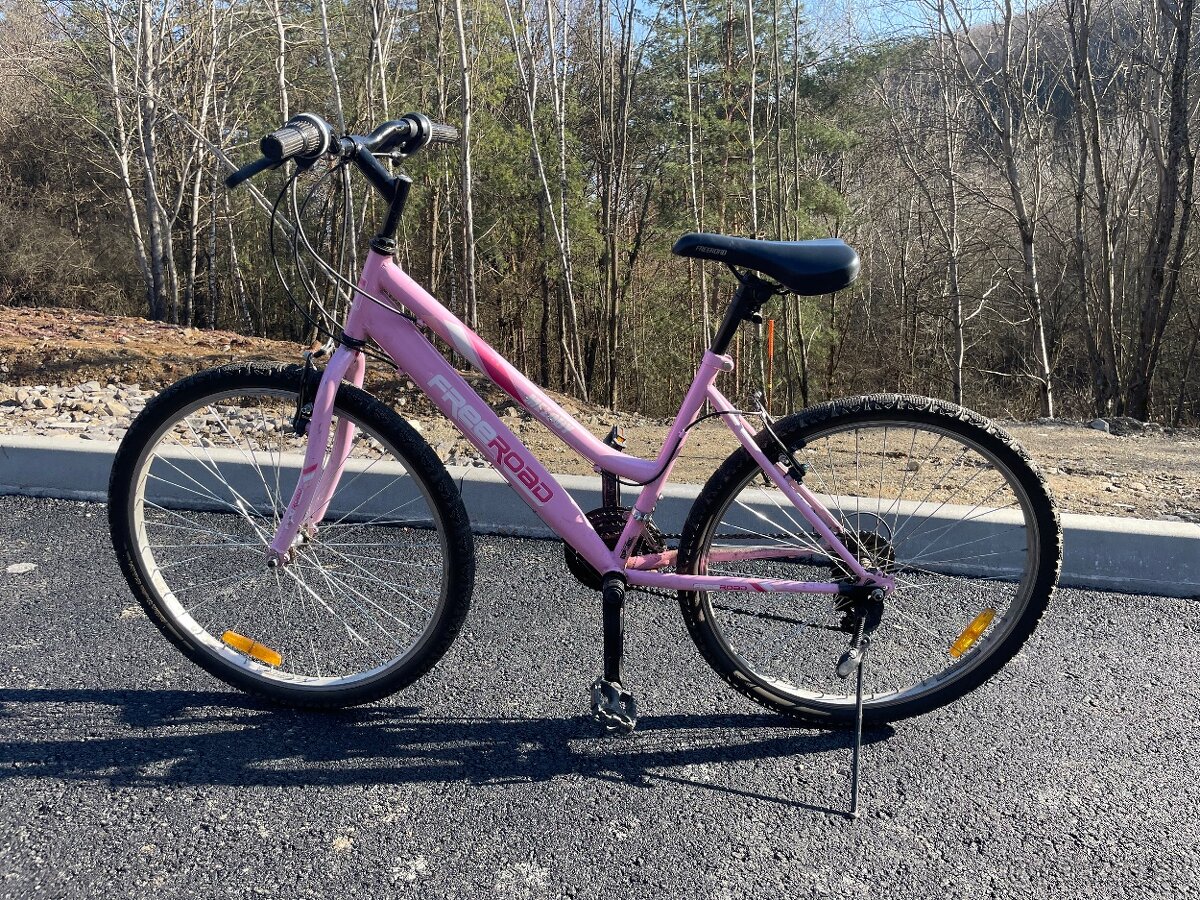 Predám použivaný dievčenský bicykel, jazdiť sa na ňom dá, brzdy predné aj zadné fungujú, prehadzovačky naľavo aj napravo tiež fungujú, pedale bude už treba vymeniť, kolesa su 26.