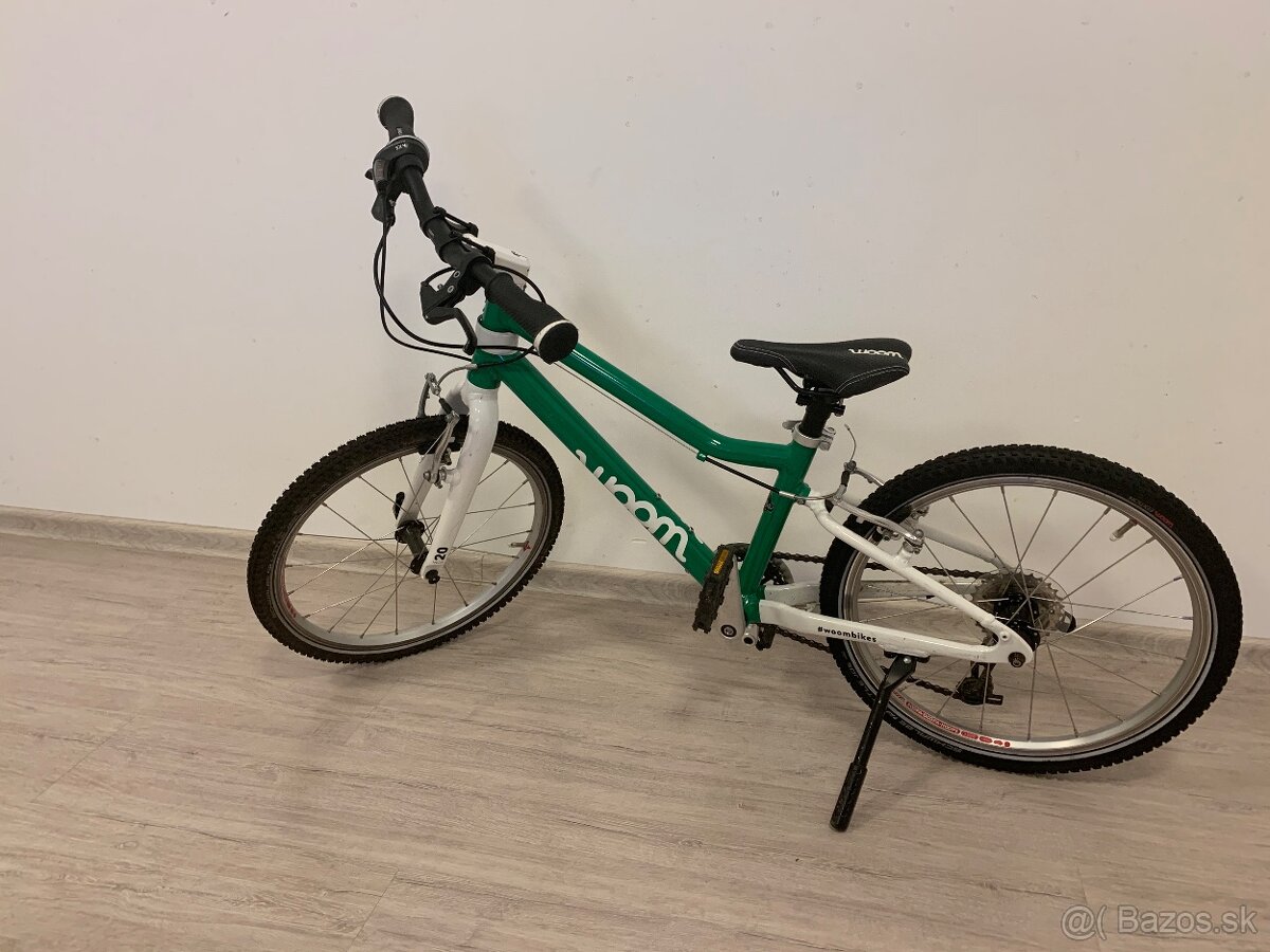 Detsky Woom 4 - [1.3. 2026]Vyborny stav, mierne znamky pouzivania, velkost 20”, jednoduchy system prehadzovania rychlosti, sedadlo nastavitelne packou, so stojanom. Osobny odber Bratislava - Devin.