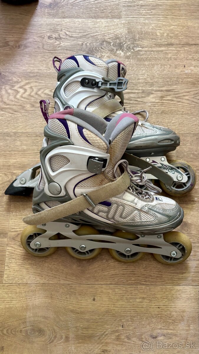 Predám kolieskové korčule značky FILA veľ. 40 vo veľmi dobrom stave. Boli používané zriedka. Sú plne funkčné. Dôvod predaja je kúpa nových ako dar.