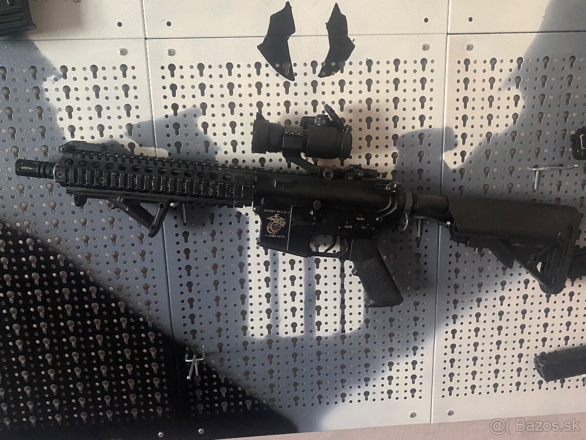 M4 na štýl mk18 - [20.2. 2026]Zdravím. Aj keď nerad ale posuniem niekomu túto zbraň, základ je od Delta Armory - Talos, čiže je tam základná nastaviteľná procesorovka. Mám ju necelé štyri mesiace. Začal som ju prerábať na výzor veľmi populárnej zbrane MK18 ale mám teraz veľa rozrobených zbraní a málo miesta. Okrem predĺženej hla ...