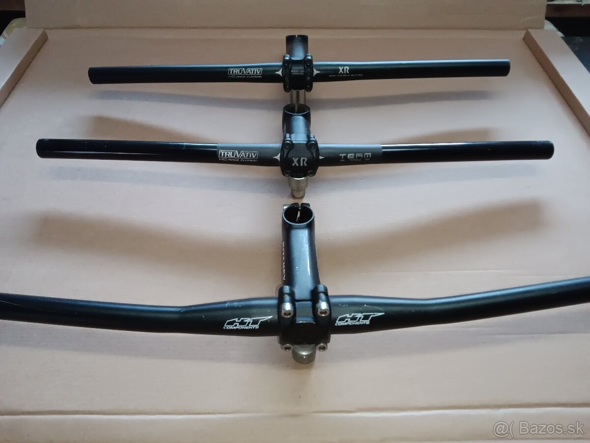 Predám riadidlá s predstavcami na detské bicykle. Zhora Truvativ XR predstavec 120 mm, dĺžka riadidiel 570 mm, stredné - Truvativ Team predstavec 100 mm, dĺžka 580 mm, spodné predstavec Ritchey 120 mm, riadidlá HT dlžka 600 mm. Cena za 1 ks -15€. Pošlem poštou