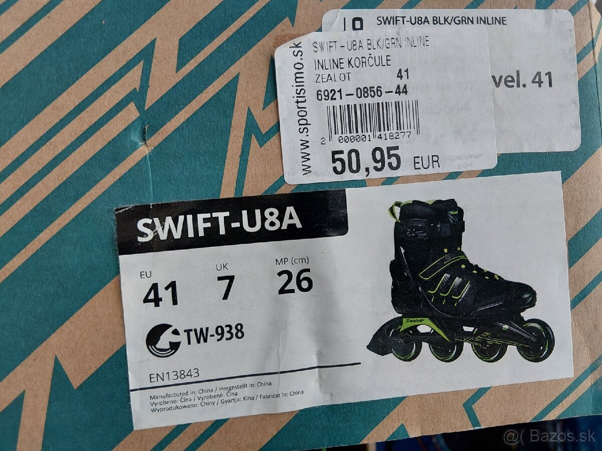 Predám kolieskové/inline korčule veľkosť 41, zealot Swift-u8a, málo používané, kupované v sportisimo