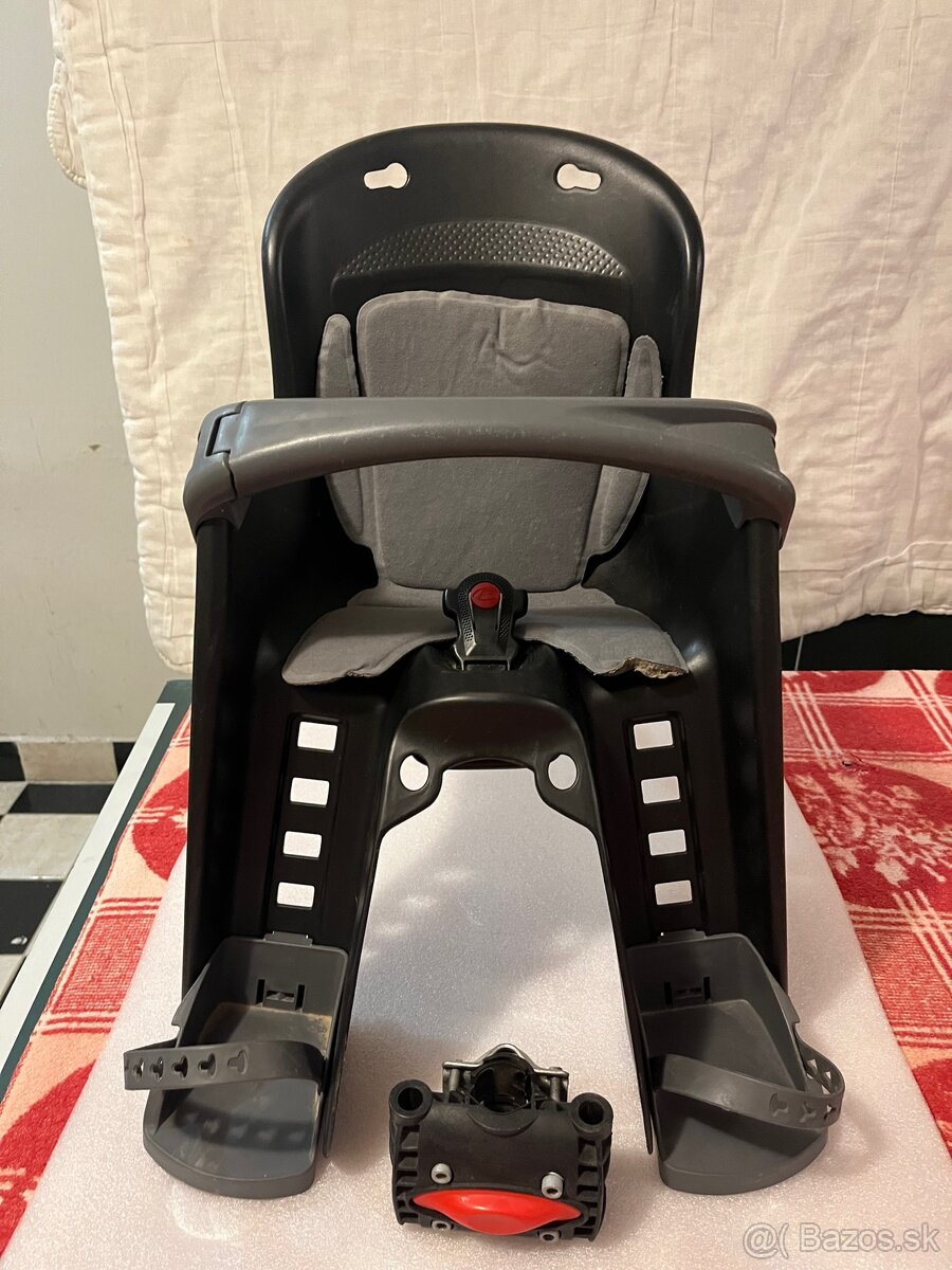 Sedačka je určená na montáž na rám bicykla (zadná montáž), má pevné 3-bodové bezpečnostné pásy a nastaviteľné opierky na nohy. Stabilná a bezpečná konštrukcia, vhodná na bežné výlety aj dlhšie jazdy.