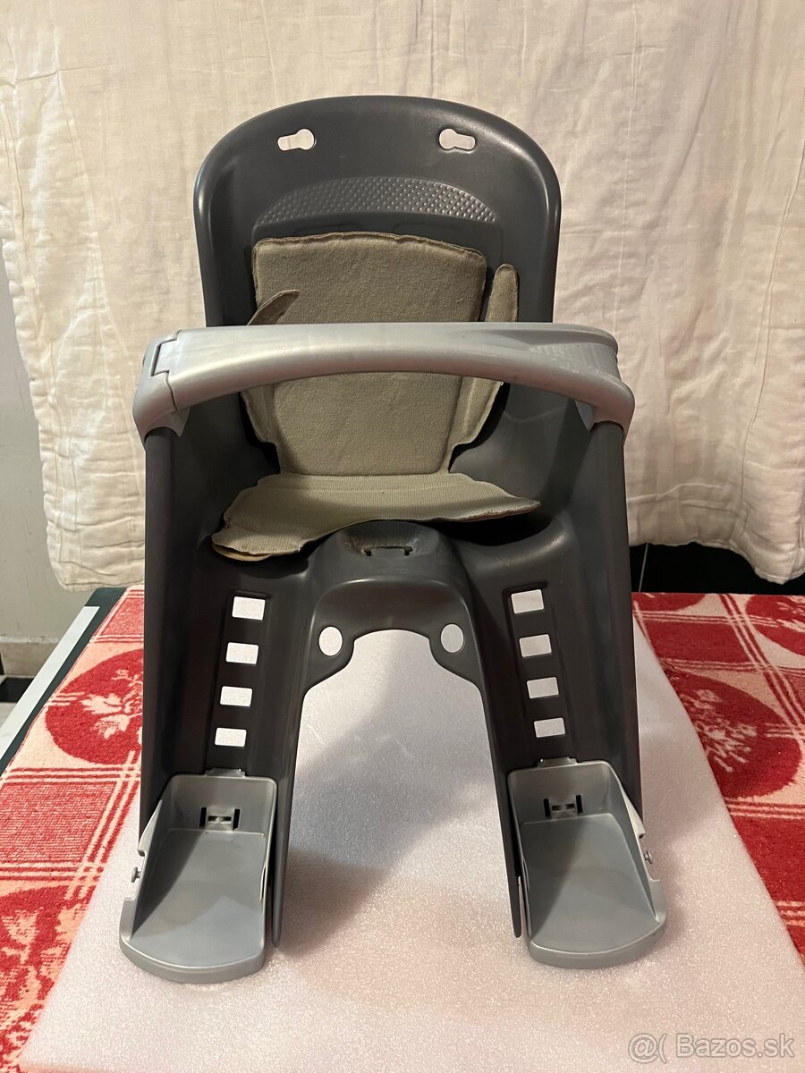 Sedačka je určená na montáž na rám bicykla (zadná montáž), má pevné 3-bodové bezpečnostné pásy a nastaviteľné opierky na nohy. Stabilná a bezpečná konštrukcia, vhodná na bežné výlety aj dlhšie jazdy.