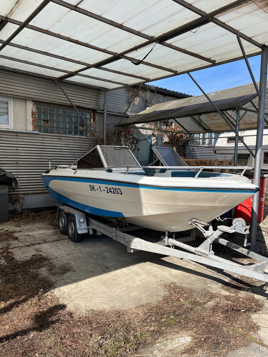 Motorový čln,loď - [11.2. 2026]Predam čln značky Regal so zabodovaným motorom cobra 4.3l 128kw 170hp, 5.5m dlhy, vybava: radio,sonar,nove vnutro(sedačky,podlaha),povinna vybava, strecha, plachta na zakrytie,gril. Loď je 8 miestna,papiere platne do leta 2027, k lodi je aj privesny vozik brzdeny ten ma platnu stk do 2026 značka huw ...