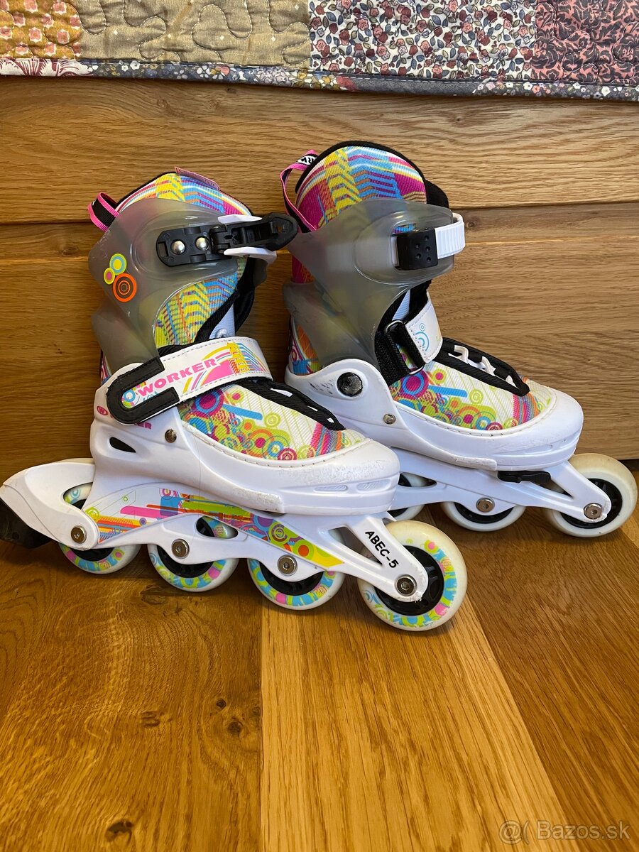Predam dievcenske inline korcule znacky Worker, velikost 30 - 33, nastavitelna podle potreby. Korcule jsou pouzivane, ale ve velmi zachovalem a udrzovanem stavu. Kontaktovat prosim telefonicky.