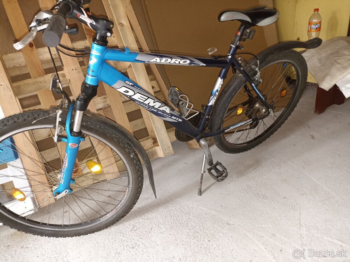 Dobrý deň, predám Demu Adro veľkosť je to M je pre ľudí od 166 cm do 175 cm, kolesá sú veľkosť 26 a je to 7x3 čiže 21 prevodový- bicykel je v peknom stave, sú na ňom nové zadné brzdy, predáva sa s blatníkmi aj stojanom na opretie bicykla.. Bicykel má tieto chyby: treba nastaviť prednú prehadzovačku lebo nechce zaradiť 3 stupeň, pre pochopenie od 1 do 7 zaradí aj 2x7 zaradí ale 3x7 nechce tam zaradiť 3, a je trochu roztrhnutá sedačka. Cena je 110 eur - preferujem osobný odber.