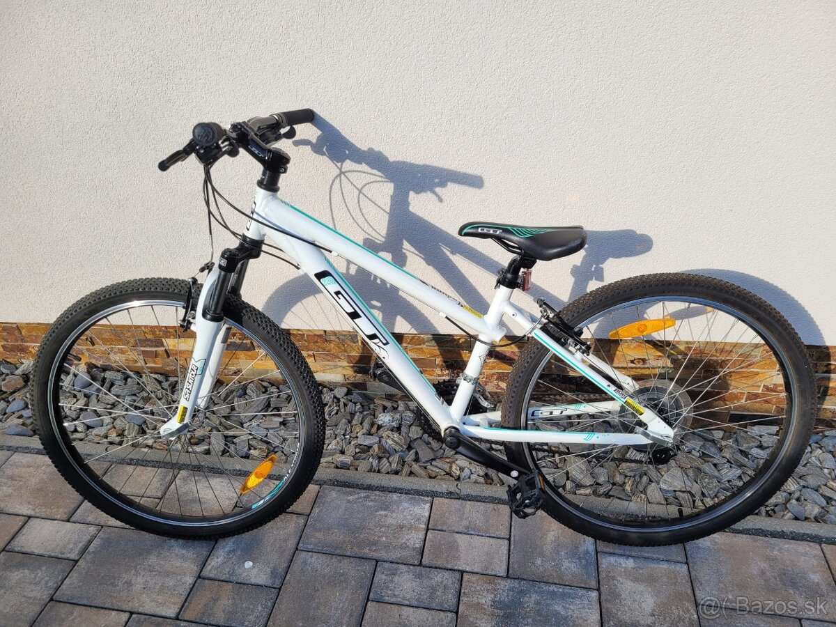 Predám unisex bicykel GT Laguna, veľkosť 26", odpružené predné koleso, znížený rám pre ľahšie nastupovanie. Bicykel bol používaný minimálne, je ako nový, nemá žiadne výraznejšie poškodenia. Brzdy aj prehadzovačky fungujú perfektne, kolesá nafúkané, môže rovno vyraziť na cestu 😎 Cena: 140 €