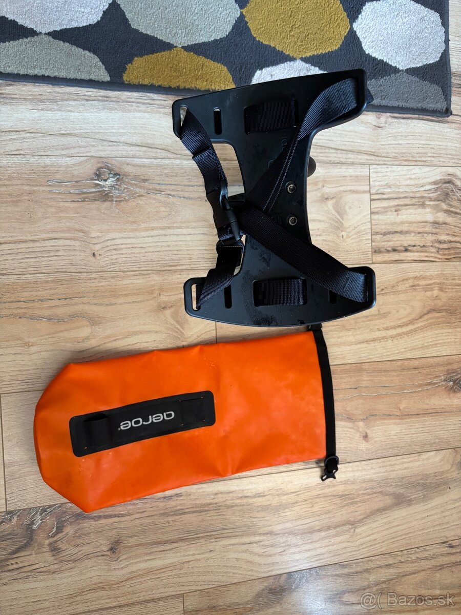 Predam nosic na zadnu stavbu aero spider a k nemu nepremokavy vak 8 L. Na nosic mozete umiestnit az tri vaky. Super pomocnik, my sme ho pouzivali s detmi na stanovacky. Posluzil velmi, tak ho posuvame dalej. Stav je vynikajuci nakolko som pedant a davam pozor aby sa veci neponicili.