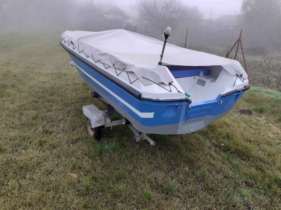 Kajutový člun WEGU Happy Sailing s přívěsem s německými doklady který lze přihlásit, nová nájezdovka a pneu.