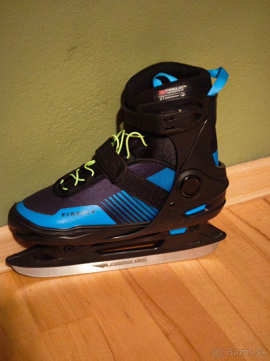 Predám detské ľadové korčule pre zimné radovánky. Majú mäkkú konštrukciu s izoláciou 3M™ Thinsulate™ pre teplo a pohodlie. Sú vybavené tlačidlom a posuvným regulátorom pre nastavenie veľkosti. Korčule tak deťom vydržia dlhšie, nie len jednu sezónu. Pútka vzadu nad pätou a na jazyku k jednoduchšiemu obúvaniu, zapínanie je vyriešené systémom rýchlošnurovania.