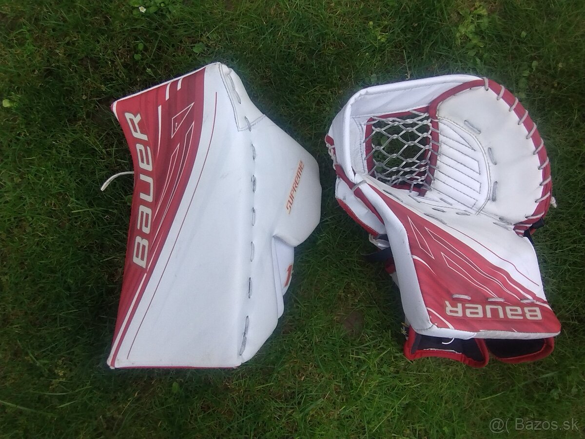 Mám na predaj brankársku lapačku a vyrážačku Bauer 1S regular, Profi najväčšia rada. Rukavice sú vo veľmi dobrom stave, boli malo používané. Nie sú vôbec potrhané. Predám spolu, alebo každú zvlášť. Lapacká 250€, vyrážačku 200€.