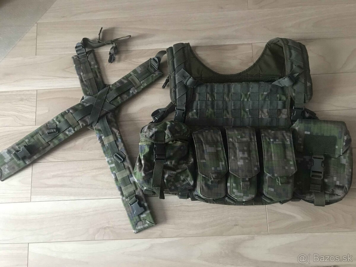 Predám vestu - nosič plátov + X-kové popruhy, ktoré sa dávajú namiesto zadného diela a spravia z nosiča chestrig. Na nosiči sú usadené 3 púzdra, každé na 2 x zásobníky typu AR s rýchloodopínaním, UNI púzdro, a lekárnička - IFAK s rýchloodopínacou platformou. Cena 290€.