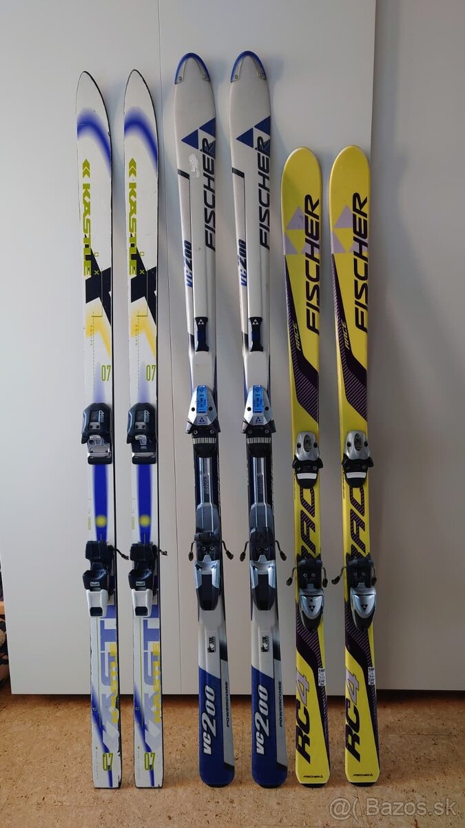 Ponúkame na predaj tri páry zjazdových lyží – Fischer RC4 Race 160 cm / Fischer VC200 175 cm / Kästle 07 Equipe 170 cm (foto), cena po 20 €, spoločný odber 50 €, k dispozícii v Devínskej Novej Vsi.