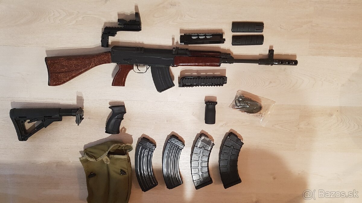 Predam SA VZ. 58, kaliber 7.62x39 prerobena zo samocinnej na samonabijaciu, vynimka nutna, spolu s NP a ZP. Bohate prislusentvo vratane bodaka a dvojnozky ( nie su na foto). Mam k nemu original pazbenie a komplet set Fab defense ako na fotke. Na zbrani je nahodeny kopenzator. Zaroven k puske je 2x plastovy 30r zasobnik, 4x kovovy 30ran 1x 10ranovy kovovy. Kolim nie je sucastou predaja. Podobne ako AK47. Predam, pripadne vymenim za samonabijaciu brokovnicu (Mossberg, Benelli, Fabarm a podobne) alebo gulovnicu opakovaciu, samonabijaciu (308 win, 30-06, a pod.) s doplatkom. Dohode sa nebranim.