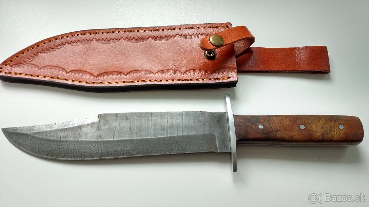 Ponúkam na predaj kvalitný full tang bowie nôž z damaškovej ocele. V cene je aj kožené puzdro.