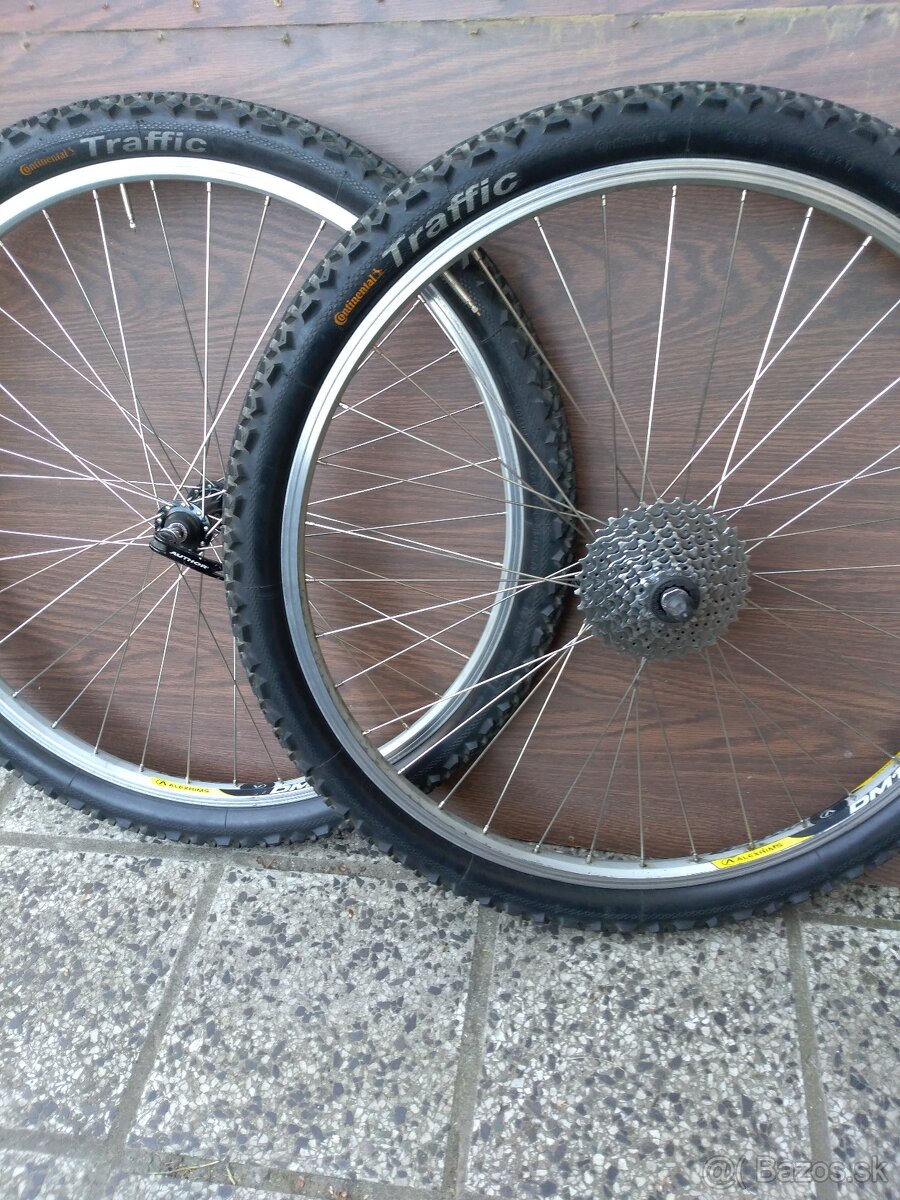 Kolesá 26 horske - [10.3. 2026]Predám kolesá na horský bicykel, predné+zadné,7 kolo, komplet plášte a duše 26", vycentrovane.
