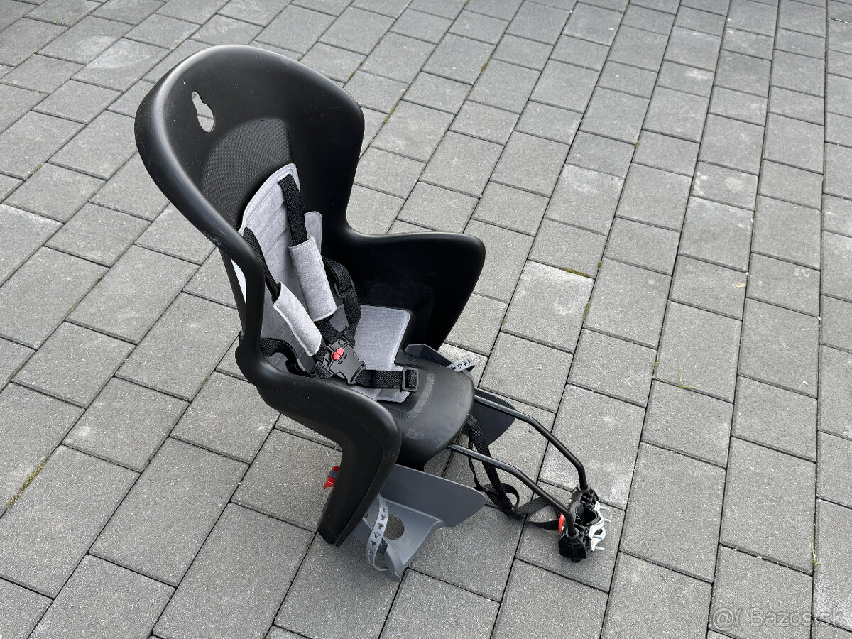 Detská sedačka na bicykel pre deti od 9 do 22 kg Nastaviteľný 5-bodový bezpečnostný pás s polstrovaním a detskou poistkou.