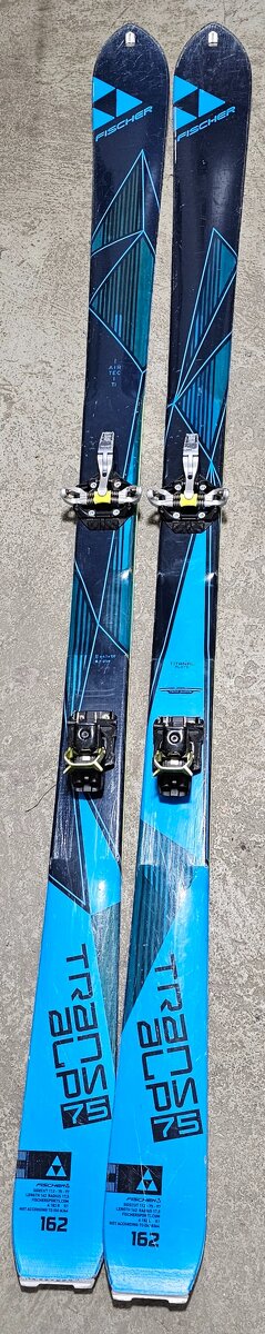 Fisher airtec 165 cm. Ľahké 1,05 kg, závodné karbon - paulovina core lyže (brzdy viazania sú tiež v sete, nie sú momentálne namontované. Pre Veľkosť lyžiarky č. 34. Pásy, žlté, zachovalé.