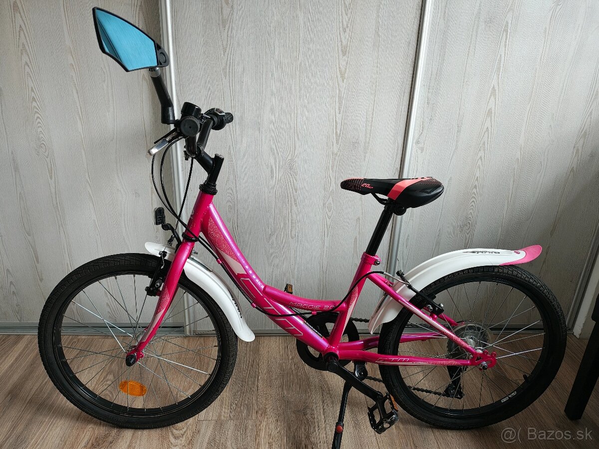 Predám dievčenský bicykel CTM maggie 20, veľmi pekný, zachovalý , plne funkčný .20"kolesá, blatníky,stojan,zvonček,spätné zrkadlo.Známky bežného používania.Vhodný pre deti od 6-9 rokov.Cena 120€,len osobný odber.