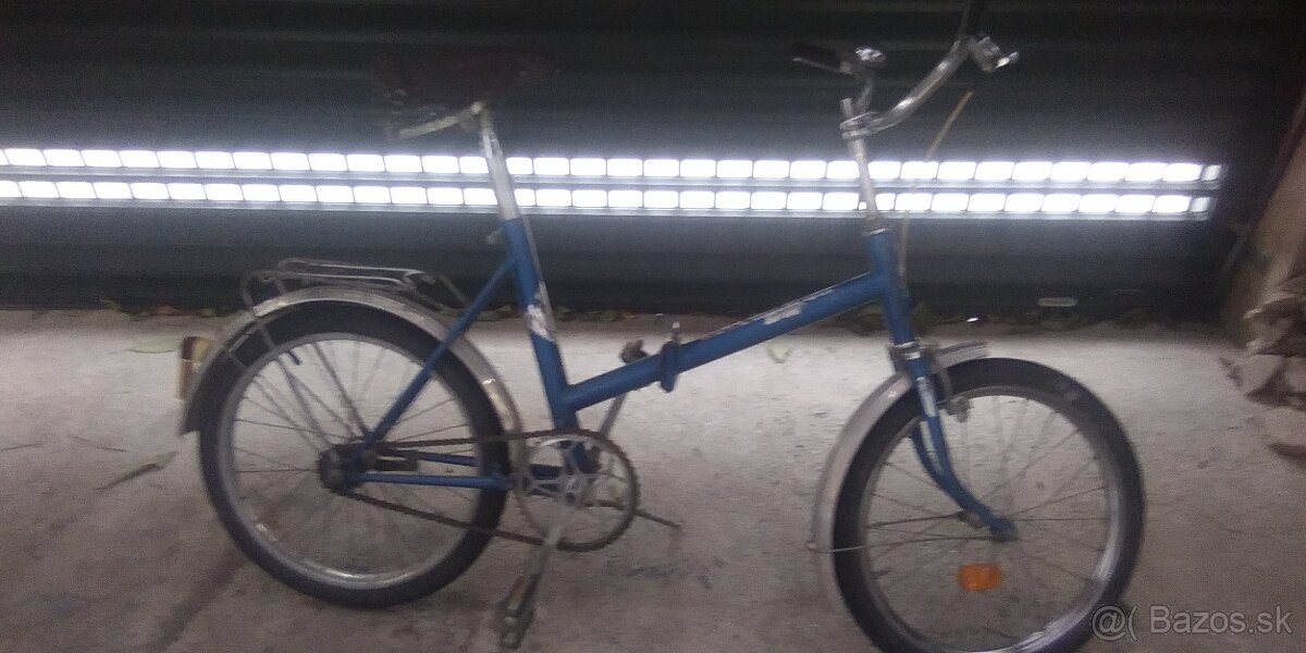 Skladací bicykel Eska , originál , prémiová rada roku 1979 , zachovalý , okrem plášťov všetko pôvodne , originál pružinová kožená sedačka , plus náhradne zadné koleso , cena 79,- € , alebo dohoda
