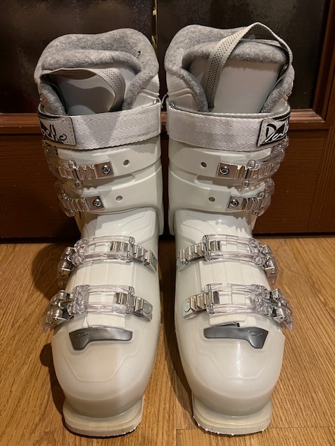 Predám dámske lyžiarky značky Dalbello ASPIRE 5.7. Flex index 55, topánky boli parkrát použité, žiadne vážne poškodenia, minimálne šúchance. K topánkam pridám úložný vak.