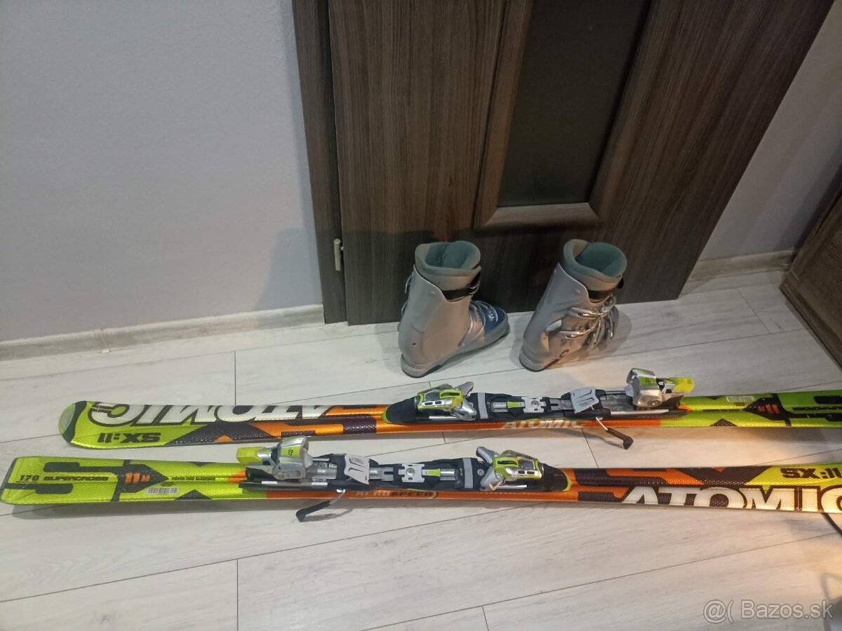 kvalitne a velmi zachovale lyže Atomic dl 170cm sendvičová konštrukcia cena 80e a lyžiarky munarí micro zapinanie, vel 39-40 70e, možnost dokupiť prilbu a paličky