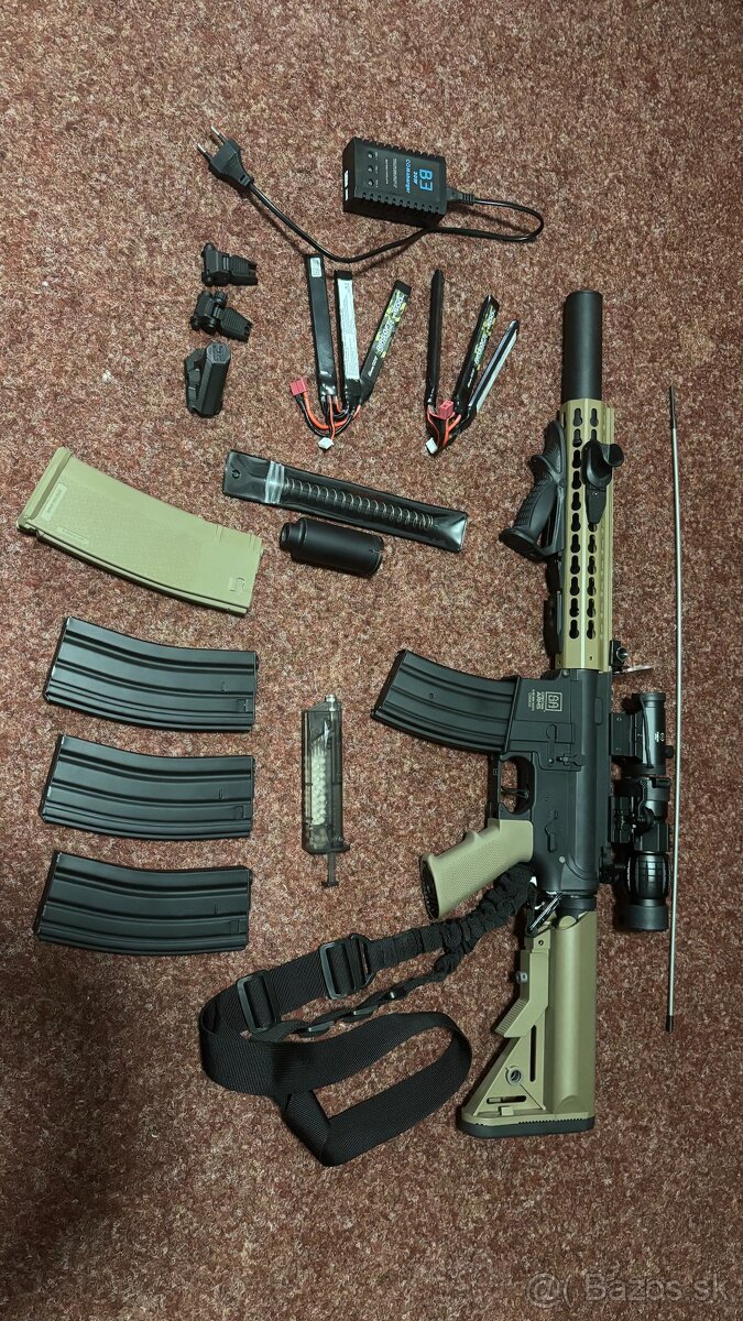 Dobrý deň, predám airsoftovú repliku SPECNA ARMS M4 CORE HAL ETU – half tan (SA-C07) spolu so všetkými doplnkami, ktoré sú na fotke. Replika používaná na 3 akciách. Pri použití 0,23 g BB má výkon 1,4J. Dôvod predaja: prechádzam na sniperku.