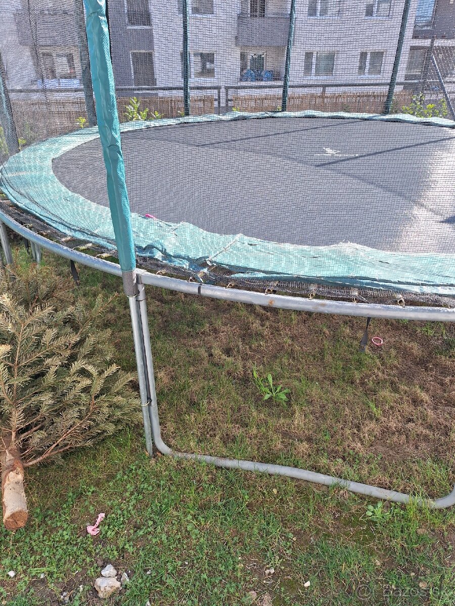 Predám trampolínu veľkosti 5 metrov za symbolickú cenu 40 eur.Trampolina ma malú dierku ,ktorá sa da zalepiť na trvalo lepidlom na trampolíny.Na pružinách nie je už kryt a zips na sieťke je pokazený.Pôvodná cena novej je 330 eur.