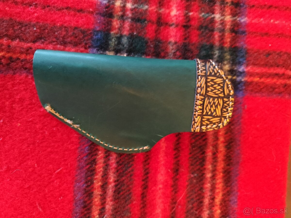 Mini lovecký nôž na krk - [29.3. 2026]Mini nôž na krk. Nôž má extrémne ostrú nerezovú čepeľ typu full-tang, s čiastočným ozubením ostria. Rúčka je z pravého jelenieho parožia. Rúčka je vybavená koženým remienkom s karabínkou pre uchytenie noža k zápästiu, či k púzdru. K nožu patrí kydexové púzdro, ručne obšité - potiahnuté hovädzou kožo ...