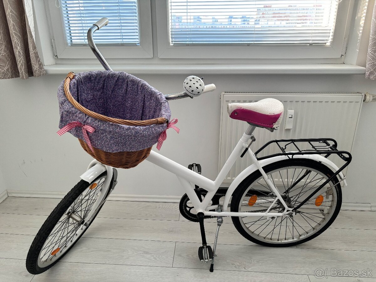 Predám prerobený mestský bicykel, nastriekaná nová farba biela, aj zadný nosič a kryt na retiazku, tie sú čiernou farbou streknute, všetko v autolakerni, vymenene sú pedále, retiazka, stojan, odpružený sedak (trochu zafarbeny, odraty, noo), odrazky, skoro všetko :))) Je však bez prevodov, bez brzdy, klasika, das spätný chod a tak brzdis ;) Sedačka je širšia, makkucka, parádne sa na nej sedi. Predavam bez doplnkov, pripadne za košík sa vieme dohodnúť a zvonček je môj, je to moja srdcofka. Cena za bicykel je znizena na 90 €.