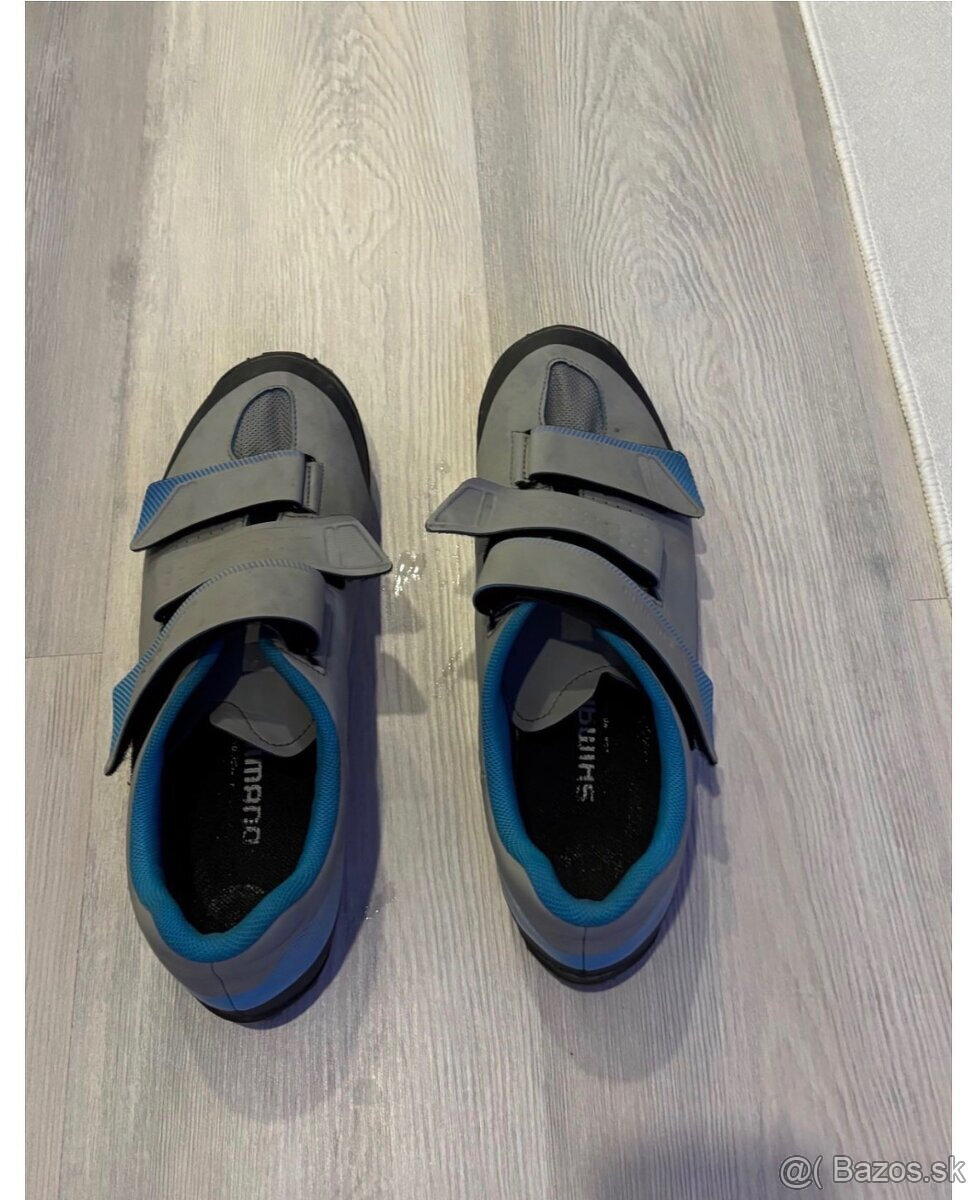 Z dôvodu prechodu na cestný bajk predám MTB tretry značky Shimano, veľkosť 45. Bežné topánky nosím vo veľkosti 44.