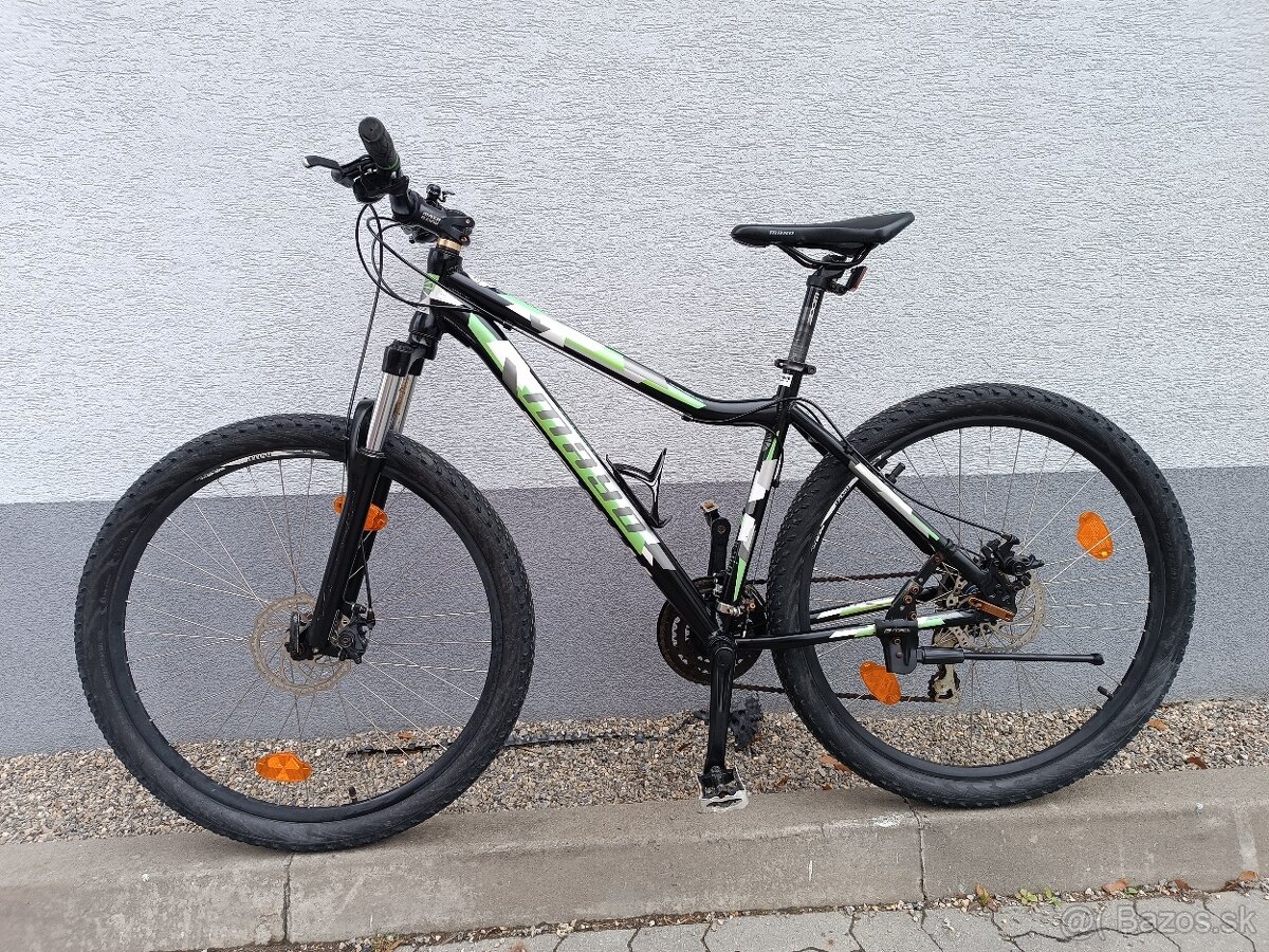 Predám horský bicykel Mayo"veľkosť kostry 18" cca-150 do 178cm.velkost kolies 27,5"-široke gumy-prehadzovacky Shimano 3x8 kotúčové brzdy.pouzivany plne funkčný cena 220€ Dubnica nad Váhom info 0904503901