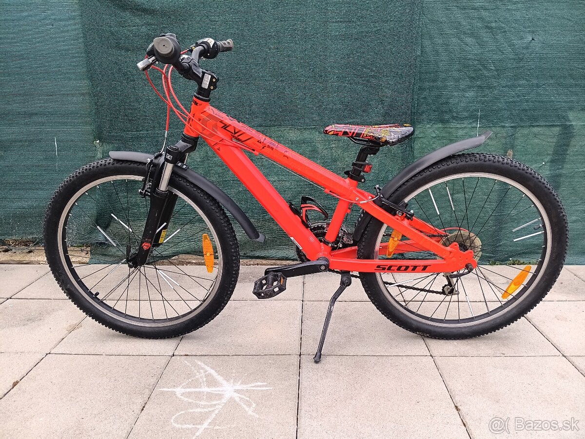 Predám detský bicykel s veľkosťou kolies 24,ľahký hliníkový rám, odpružená predná vidlica,shimano radenie s 18 prevodmi(3×6),bežné známky používania,do výšky dieťaťa cca 140cm+darček tachometer.Nová Baňa.
