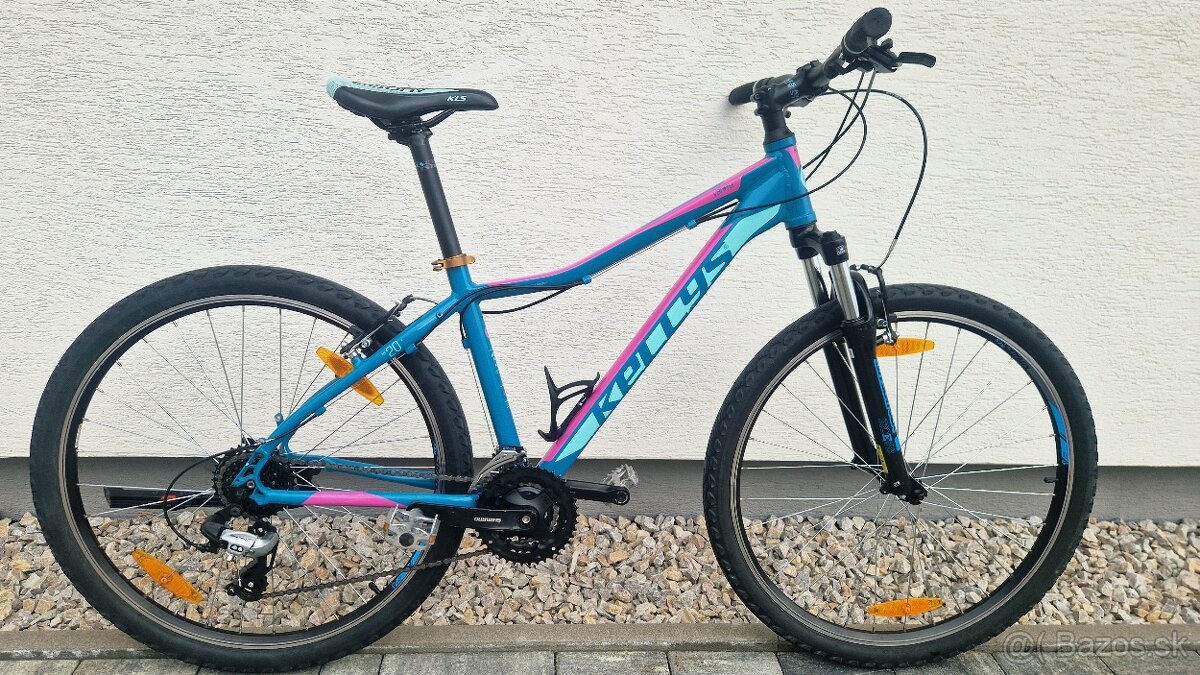 Predám KELLYS Vanity 20 na foto. Veľkosť kolies 27,5, veľkosť rámu 17"/M - odhadom na výšku 159-175 cm - najlepšie vyskúšať osobne. Radenie je 3x8 Shimano - páčkové. Bicykel bol trochu používaný ale je v dobrom stave - plne funkčný, radenie aj brzdy sú nastavené. Má pár drobných škrabancov a odrenín ale nič vážne, celkovo je veľmi zachovalý. Pridávam k nemu stojan, držiak na fľašu a prípadne pridám nejaké príslušenstvo. Cena 300€. Kontaktovať prosím na mail alebo telefonicky. Občas viem zabezpečiť odvoz na trase KE-RS-LV..