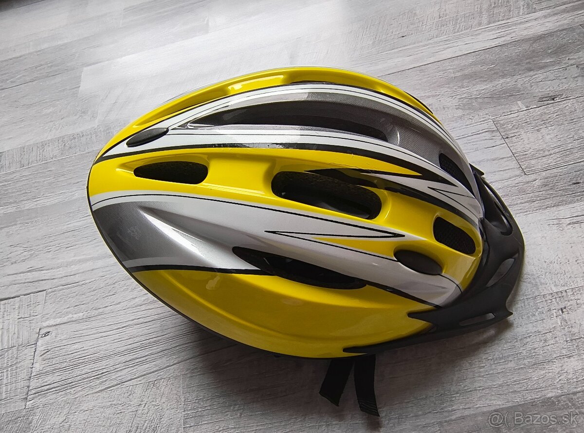 Cyklistická prilba - [4.3. 2026]Párkrát použitá, dlhodobo odložená a nepoužívaná, bez mechanických poškodení, strieborná farba, obvod hlavy 58 - 62 cm. Možná doprava zdarma podľa dohody.
