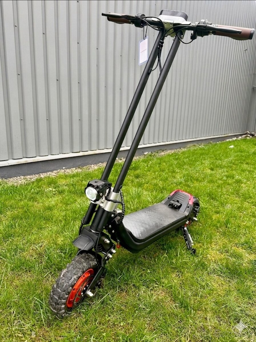 Dual motor- Elektrická kolobežka s výkonom 2x1200W, ktorá pri najvyššom výkone dosahuje výkon až 4000W. Špičkový výkon až 2400 W (2x1200W), revolučná vymeniteľná batéria! Hľadáte kompaktný, ale neuveriteľne výkonný stroj do mesta aj do prírody? Elektrická kolobežka vás ohromí svojou dynamikou a prémiovými funkciami. O pohon sa starajú dva motory s nominálnym výkonom 4000 W (2x 1200 W), ktoré však dokážu v prudkých stúpaniach alebo pri prudkej akcelerácii vyvinúť špičkový výkon až 4000 W! Vďaka tomu vás kolobežka plynulo rozbehne až do rýchlosti 65km/h. Jedinečnou a najväčšou výhodou je však inovatívna vymeniteľná 48V batéria. Jednoducho ju vytiahnete zo zeme a vezmete domov na nabitie, pričom kolobežka môže zostať zaparkovaná v garáži! Batéria poskytuje úžasný dojazd až 70 km. Pri uspornej jazde do 100km. Účinné kotúčové brzdy, nastaviteľné pružinové odpruženie a moderný štartovací spôsob sa postarajú o vašu bezpečnosť počas takejto rýchlej jazdy. Ide o nekompromisnú technologickú špičku.